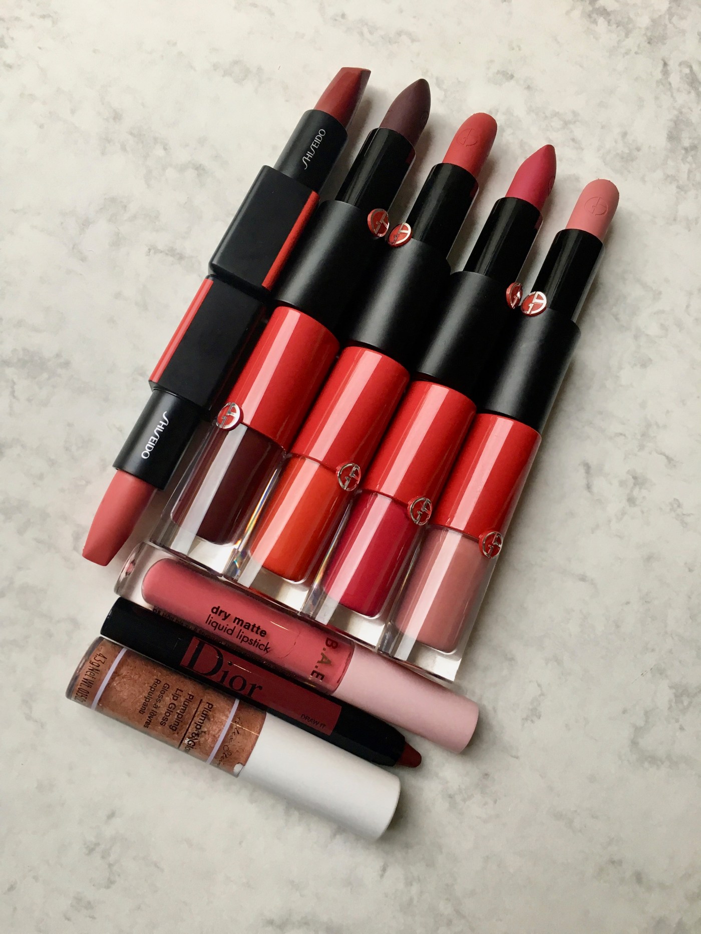 Rouge d’Armani Matte in 600 Attitude, 400, 506 en 500 by Giorgio Armani, 36,90 €.