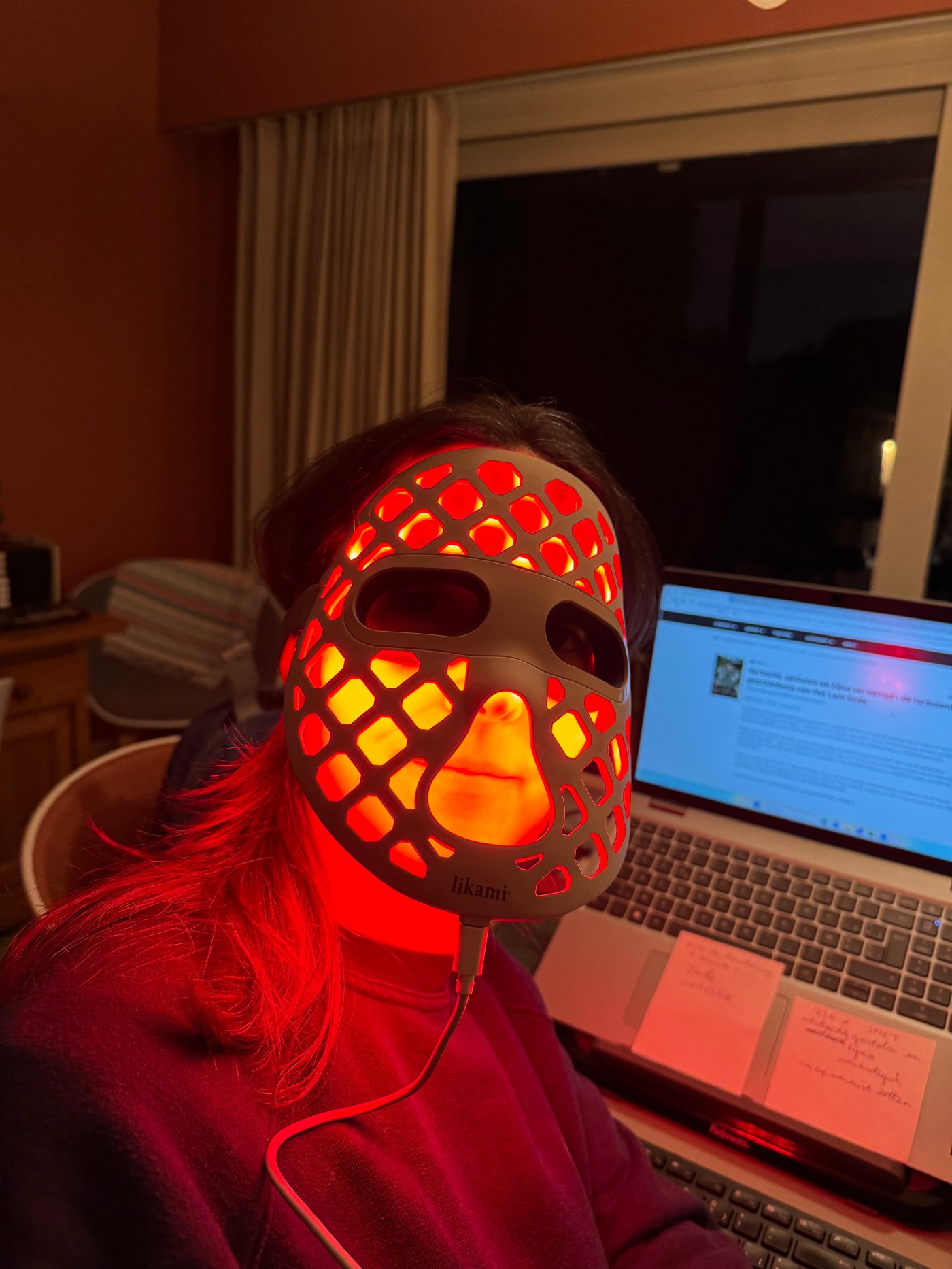 Ik testte in het verleden ook het Genius Light-masker met LED-licht van Talika, dat wat weg heeft van een futuristische skibril. Dat masker vond ik een stuk minder gebruiksvriendelijk. Lezen was bijvoorbeeld moeilijk met de bril op. Rondwandelen zonder botsen in huis ook.